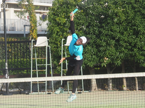 決勝は、2面展開で始まりました。D2はBチームが6-2で先勝し、D3がもつれている間に試合に入ったD1はAチームが6-1で取り返します。1-1となり、勝敗のかかったD3は、5-5からAチームが2ゲームを連取し7-5。上級生の意地を見せ、日大鶴ヶ丘高が2連覇を果たしました。